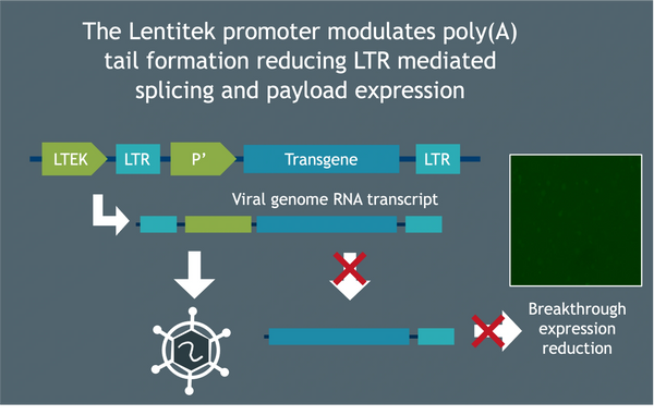 The Lentitek system effectively reduces breakthrough expression of the CAR in the manufacturing cell line, improving quality, potency and the safety of in vivo CAR-T applications.
