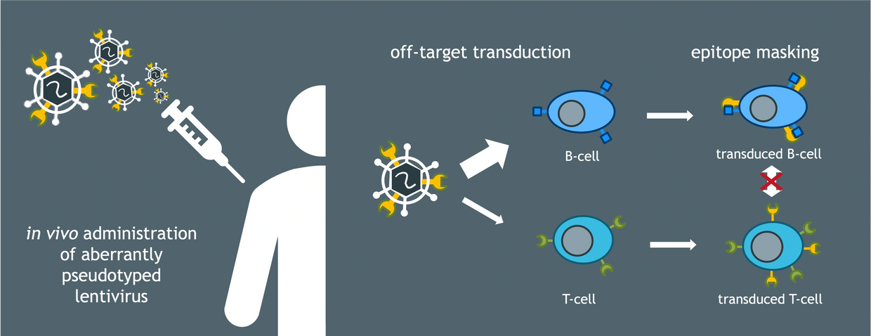 In vivo CAR-T therapy represent a huge advance existing existing ex vivo solutions. Patients benefit by being treated quickly and directly with the vector without having to undergo leukapheresis. As is the case with ex vivo T-cell transduction, if the lentivirus is aberrantly pseudotyped with the CAR, this will preferentially direct the lentivirus against the CAR target. Aberrant pseudotuping will not only significantly impact on transduction potency, but will also potentially transduce cancer cells, allowing for effective epitope escape and potential relapse.